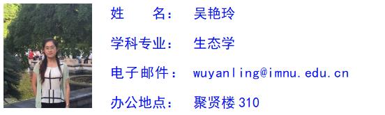 吴艳玲,女,汉族,中共党员,博士,副教授,硕士研究生导师。澳门十大信誉网赌大全生态学系系主任。主要从事草地生态学、土壤动物生态学领域的研究工作,主持国家自然科学基金项目1项,省部级、校级项目5项,参与国家级项目多项,发表国内核心期刊论文10余篇,出版专著1部。曾获得“优秀党务工作者”、“第十一届青年教师技能大赛”一等奖和“优秀班主任”等称号。承担普通生态学、环境学概论等相关课程的教学和专业实习指导工作。