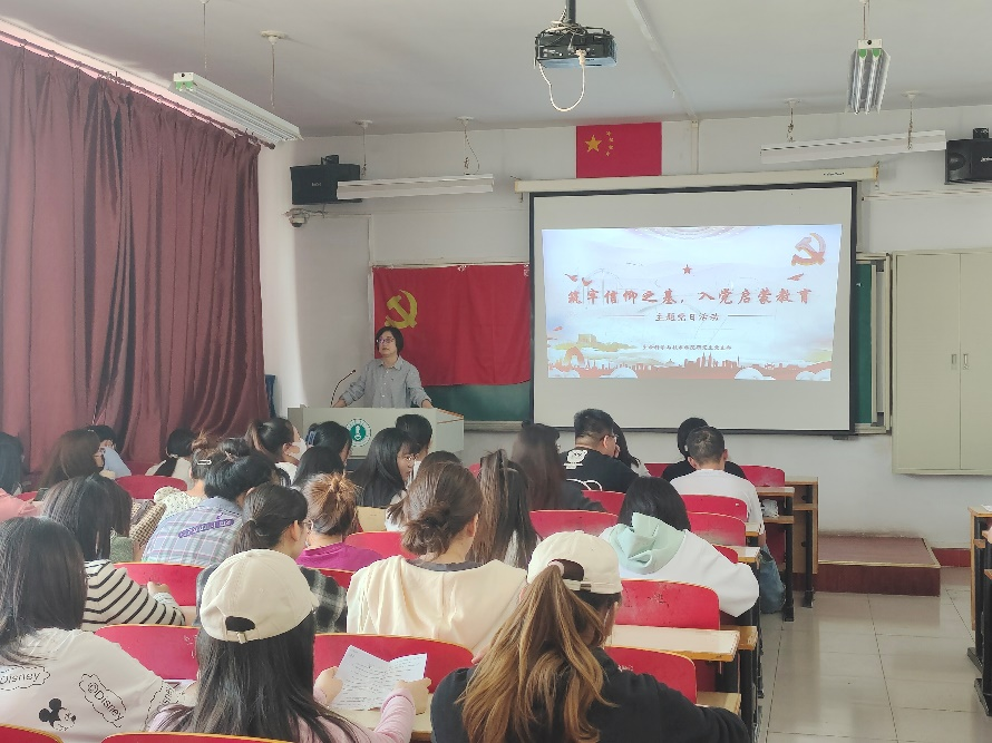 首先研究生党支部书记穆文静老师向同学们介绍了研究生党支部的基本情况。穆老师从加强理论学习,树立正确的世界观、人生观、价值观,通过实践不断端正⼊党动机三个方面分析了如何端正入党动机。要求同学们首先要抓好专业课的学习,创建优良学风,打造优异成绩。其次是抓工作态度和能力,同学们要在各自的研究室内发挥骨干作用,热心学院组织的各项活动,积极投身社会实践,勇于为同学、为老师、为他人服务。希望同学们“未进党的门,先做党的人”,严格按照一名党员的标准要求自己,争取早日加入中国共产党。