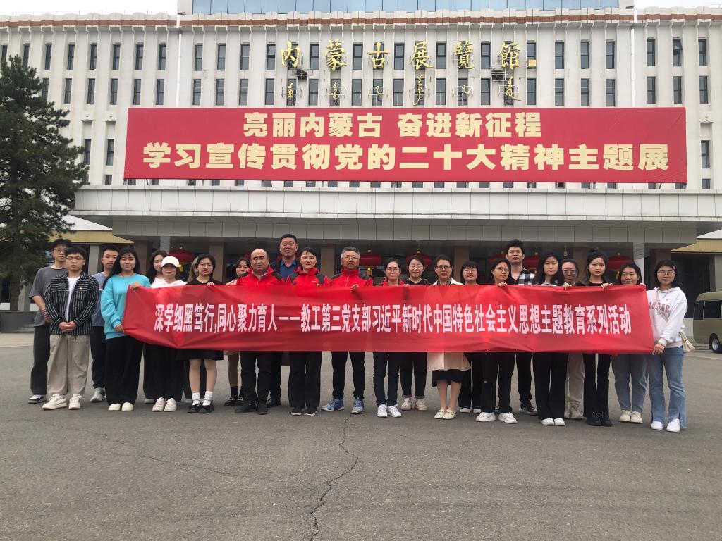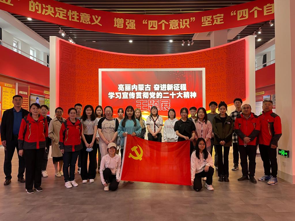 5月10日下午,信誉网赌大全教工第三党支部联合非师范类学生党支部在内蒙古展览馆开展学习贯彻习近平新时代中国特色社会主义思想主题教育党日活动,集体参观“亮丽内蒙古 奋进新征程——学习宣传贯彻党的二十大精神”主题展,并重温入党誓词。