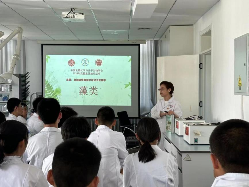 次日,6月1日下午,30余名初中生参与了生物化学实验室的开放活动。支部党员穆文静老师为这些青少年志愿者进行了以“螺旋藻等藻类的形态与功能”、“蛋白质的生物学功能与定量分析”及“氨基酸与指纹提取”为主题的科普讲座。学生们不仅通过显微镜观察了藻类的形态,还亲自参与了生物样品蛋白质的定量测定实验。