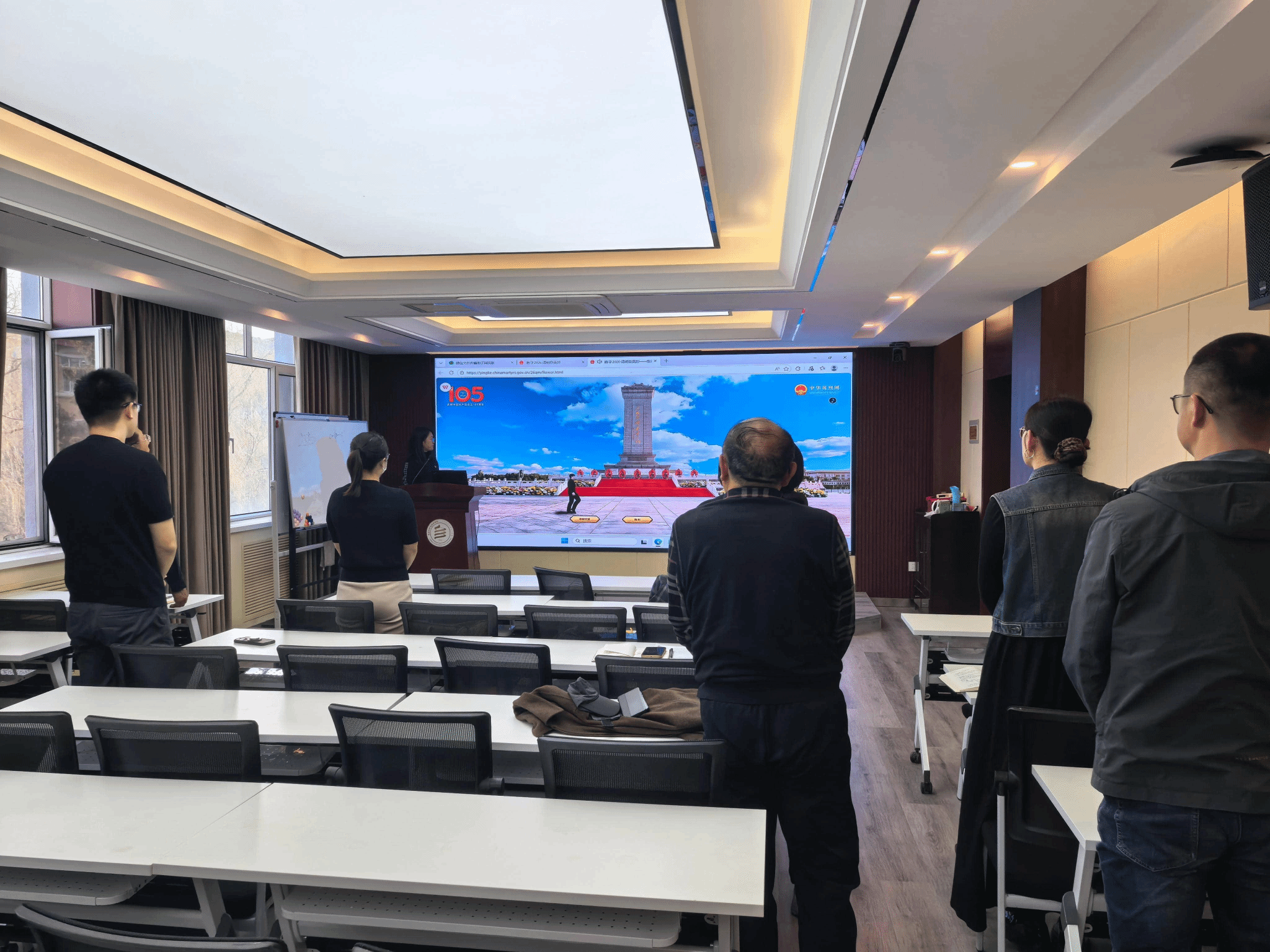 清明节来临之际,教工第三党支部于2026年4月2日下午4点30分,在学院三楼智慧教室开展“祭奠英魂、砥砺初心”主题党日活动,全体党员参加。活动中,全体党员集中观看《国家记忆》纪录片《回家》第一集《青山埋骨》,深切缅怀革命英烈,感悟和平生活的来之不易。随后,登录网络祭奠平台,网上献花篮、默哀致敬,以文明环保的方式寄托对英烈的哀思。