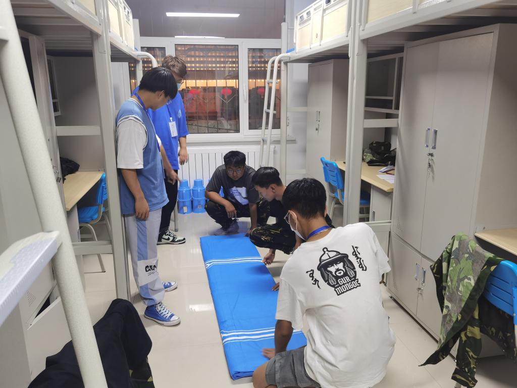 9月8日下午,院学生会各部门积极配合,在澳门十大信誉网赌大全2022级本科新生军训期间开展了新生内务标准样板间展示活动,旨在加强学生内务水平、规范军事化要求,帮助新生养成良好生活习惯,提升内务水平。活动期间,学生会部门负责人指导各个生班班级负责人参照军队的标准,对宿舍门窗地面整洁、物品摆放规范、被褥叠放平整、整体环境卫生四个部分提出了严格要求并指出了在细节整理方面的注意事项。本次活动在培养新生动手能力,强化个人素养的同时营造良好的军队氛围,为新生们尽早适应军事化管理奠定了基础。活动过程中,学生会指导人员抓紧时间,强调细节,在进行现场示范的同时指导新生进行实践操作。
