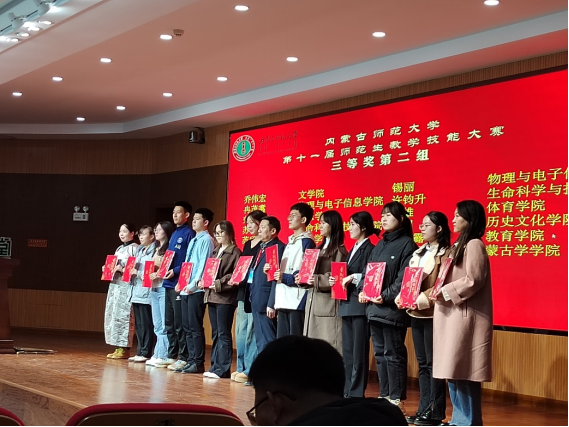 澳门信誉最好十大平台“第十一届师范生教学技能”竞赛于2023年11月4—5日在盛乐校区隆重举行,在本次比赛中,信誉网赌大全经过层层选拔,选派2020级生物科学汉2班的裴琦钰、许钧升和2021级生物科学蒙班的苏日娜共三名同学参加了本次技能大赛,指导教师为李景环、牛艳芳、高峰和乌云高娃。经过赛前师生的精心准备和赛场上的激烈角逐,最终裴琦钰同学获得二等奖,许钧升和苏日娜同学获得三等奖。