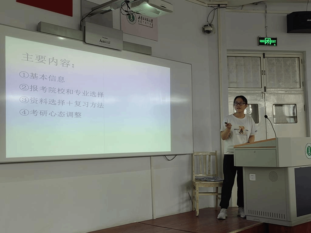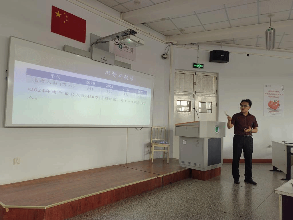 活动伊始,牧仁老师对近四年的全国考研形势与趋势进行了详细分析,并汇报了生物技术系2020级学生的考研情况。