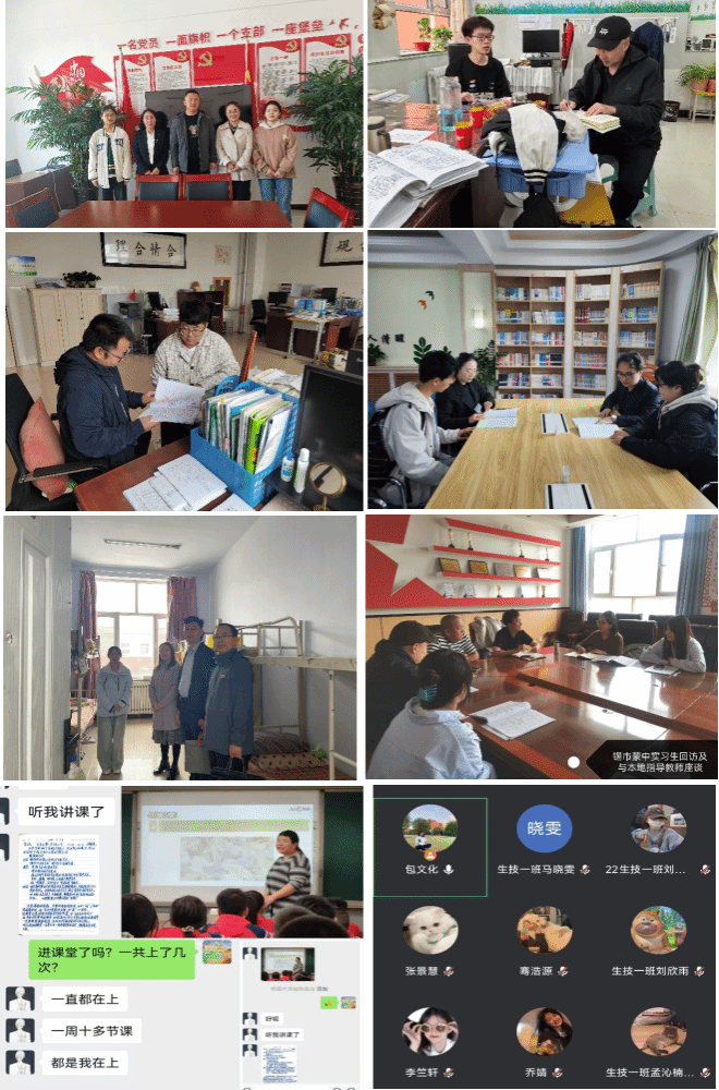 对于未进行实地走访的学生,指导教师们采用线上座谈的方式,同样对学生的教育实习情况进行了中期检查,尽量确保每一位实习生都能得到关注和指导。