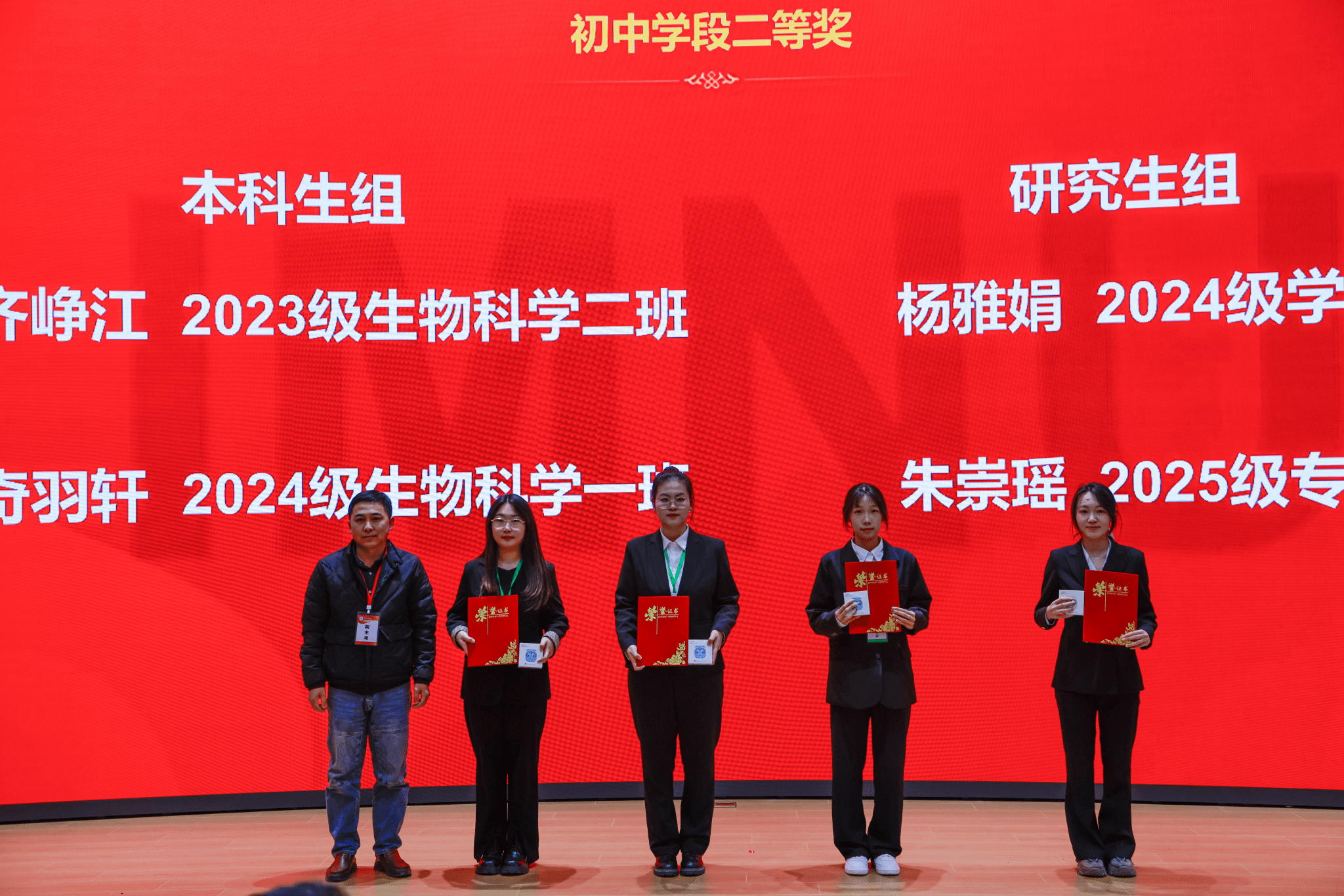 11月18日中午,大赛举行颁奖仪式。学院党委副书记、院长红雨老师在致辞中向获奖选手表示热烈祝贺,向辛勤付出的指导教师和组织团队致以诚挚感谢。她指出,本次大赛是学院教师教育工作的一次系统检验和集中展示,希望同学们以此为新的起点,进一步涵养教育情怀、打磨教学技能,在未来的教育岗位上成为点亮学生心灵的优秀教师;同时也希望广大教师继续发挥示范引领作用,共同推动信誉网赌大全师范类专业建设迈上新台阶。